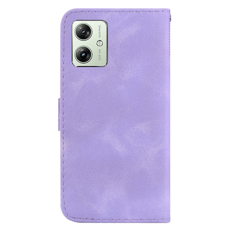 Funda de Cuero para Motorola Moto G54 con Relieve en Forma de 7 (Púrpura)