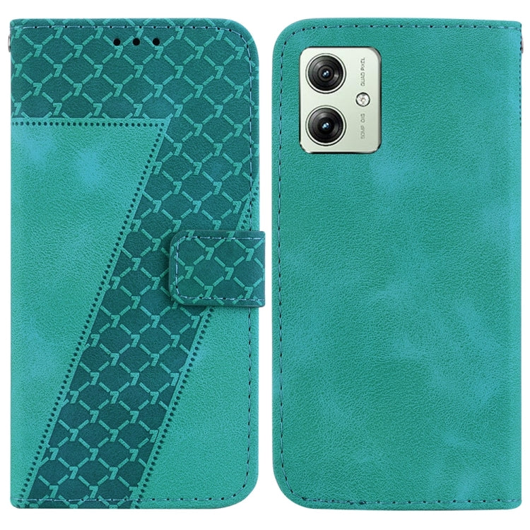 Funda de Cuero para Motorola Moto G54 con Relieve en Forma de 7 (Verde)