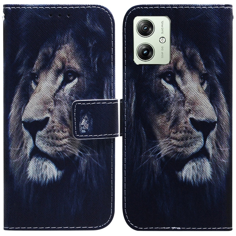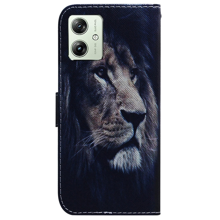 Funda de Cuero con Tapa para Motorola Moto G54 con Dibujo Coloreado (León)