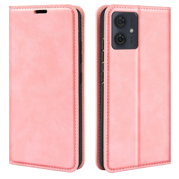Funda de Cuero para Motorola Moto G54 con Succión Magnética de Piel Retro (Rosa)