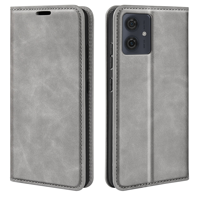 Funda de Cuero para Motorola Moto G54 con Succión Magnética de Piel Retro (Gris)
