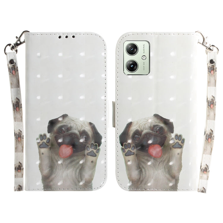 Funda de Cuero para Motorola Moto G54 con Tapa Horizontal y Diseño 3D (Pug)