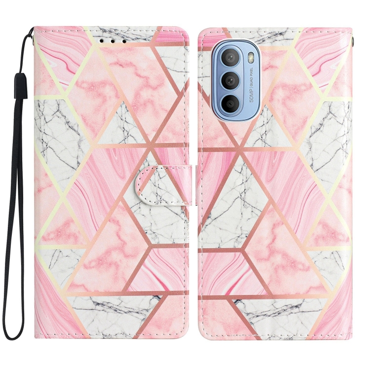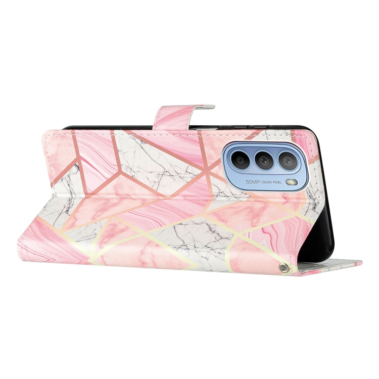 - 1x Estuche para Motorola Moto G62 de Cuero con Dibujo Coloreado Mármol Rosa