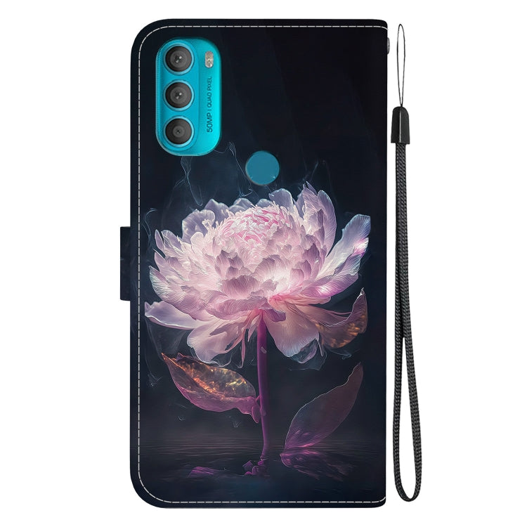 Funda de Cuero para Motorola Moto G71 con Dibujo Coloreado y Textura de Cristal (Peonía Púrpura)
