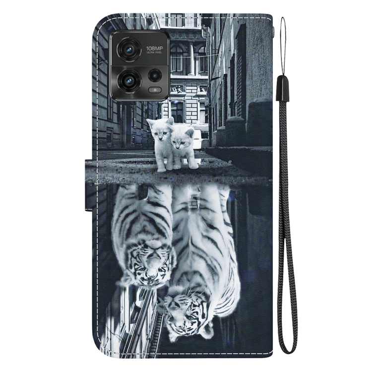 Funda de Cuero para Motorola Moto G72 con Dibujo Coloreado y Textura de Cristal (Reflejo de Tigre de Gato)