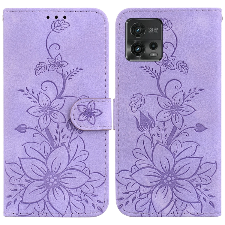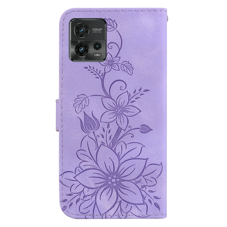 Funda de Cuero para Motorola Moto G72 con Relieve Lily (Púrpura)