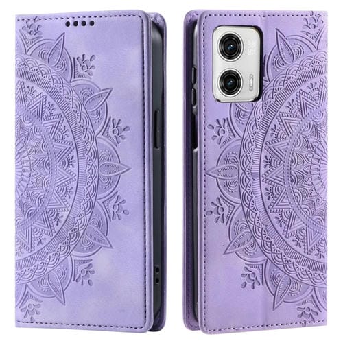 Funda de Cuero Magnética en Relieve para Motorola Moto G73 Totem (Púrpura)