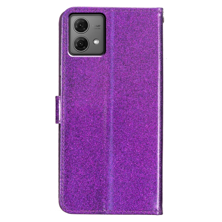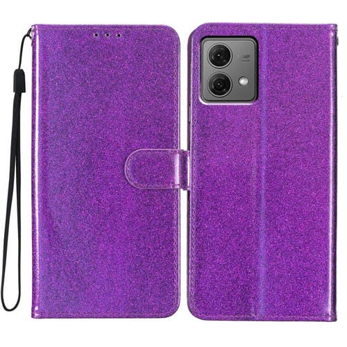 - 1x Funda de Cuero para Motorola Moto G84 5G con Tapa en Polvo y Purpurina (Púrpura)