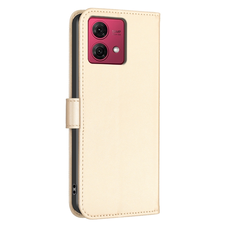 Funda de Cuero para Motorola Moto G84 con Relieve de Cuatro Hojas (Dorado)
