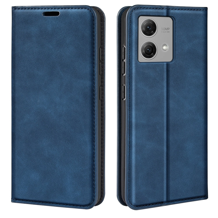Funda de Cuero para Motorola Moto G84 con Succión Magnética de Piel Retro (Azul Oscuro)
