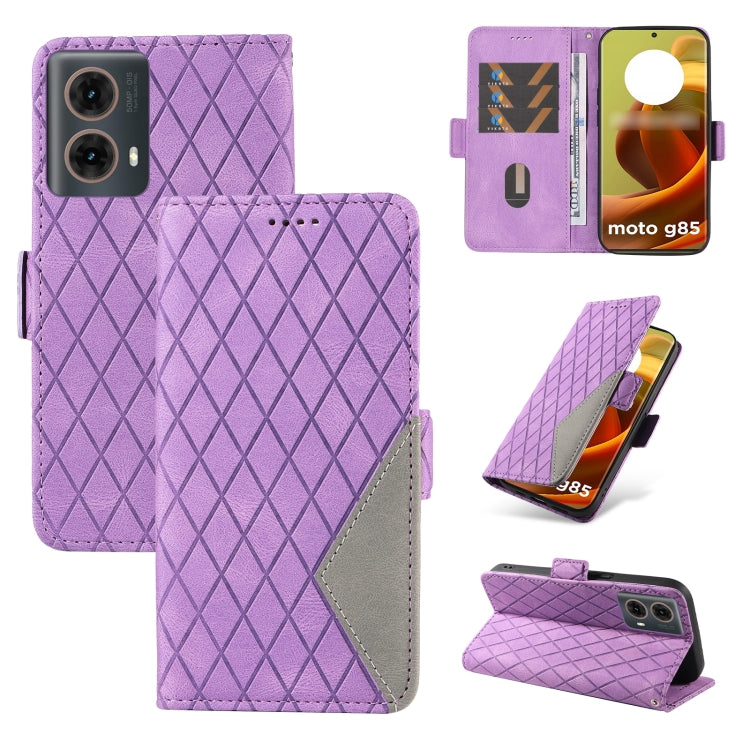 Funda de Cuero para Motorola Moto G85 con Entramado Rómbico de Dos Colores (Púrpura)