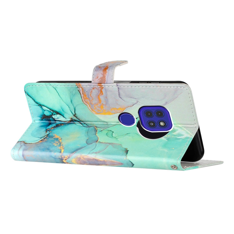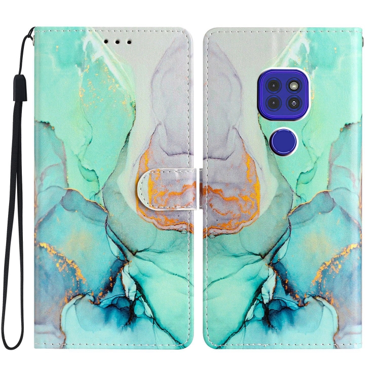 - 1x Estuche de Cuero para Motorola Moto G9 y G9 Play con Dibujo Coloreado (Mármol Verde)