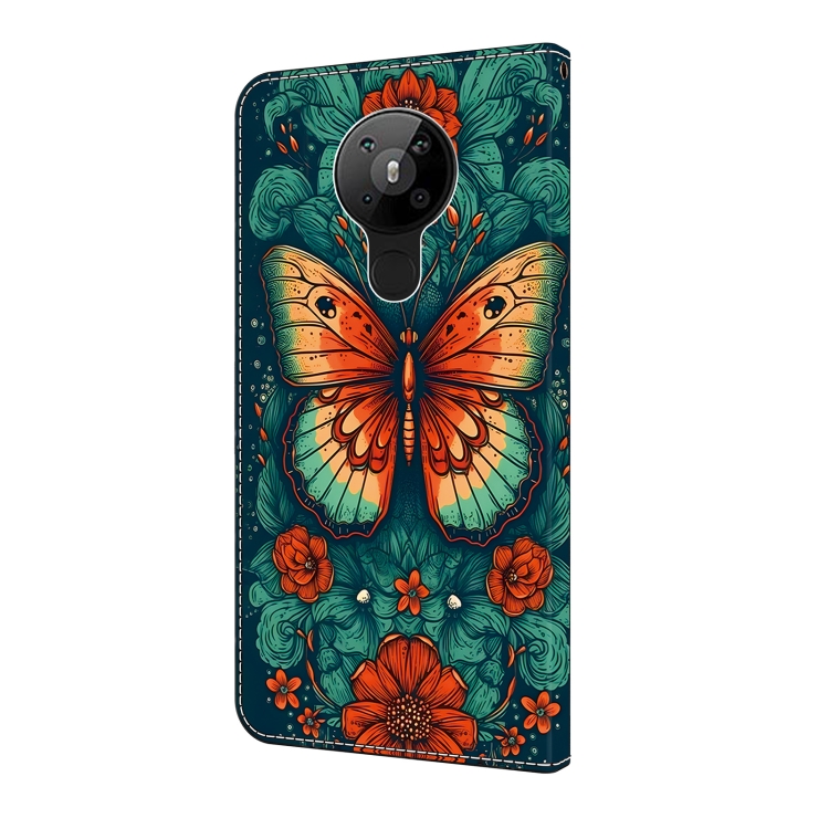 Funda de Cuero para Nokia 5.3 con Cristales Pintada Mariposa de Flores