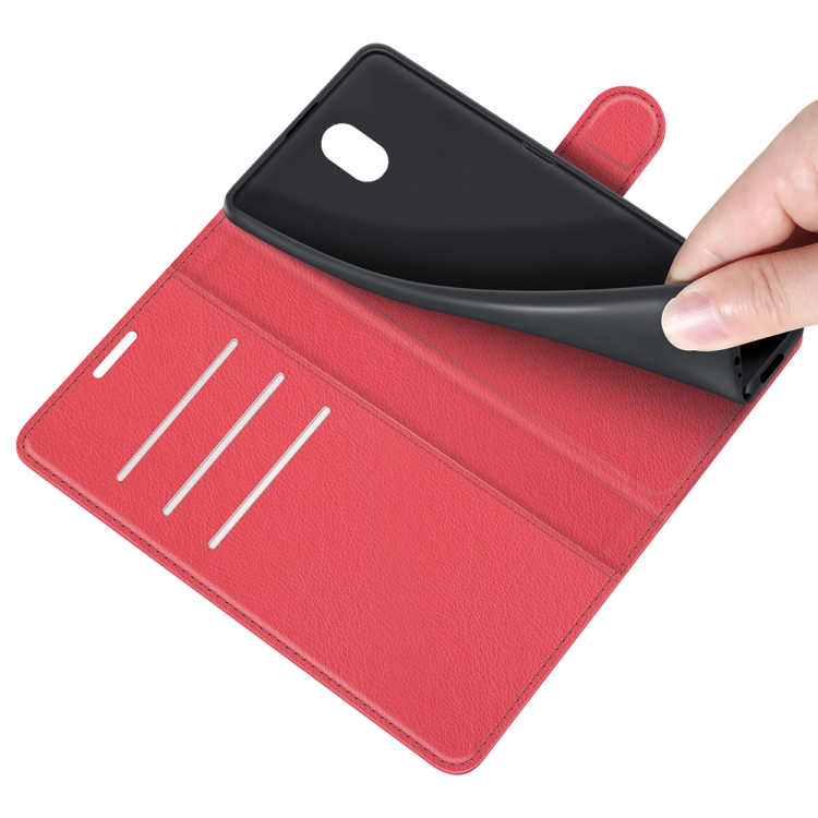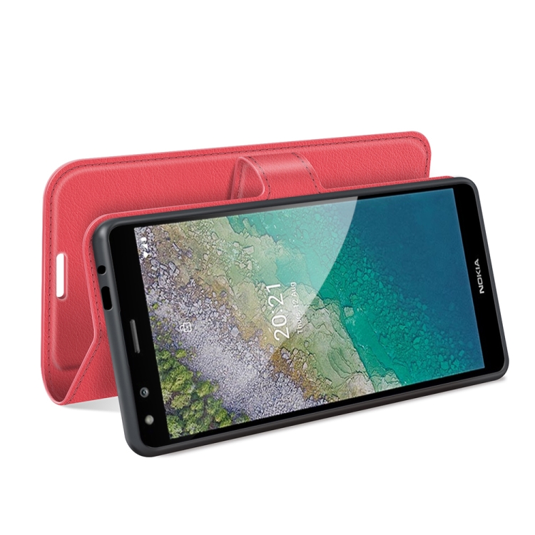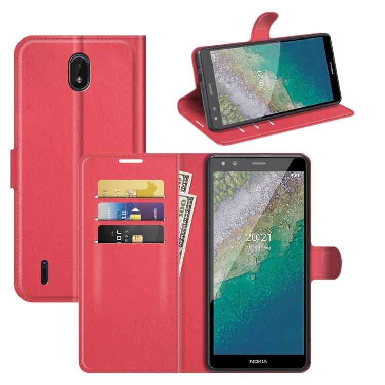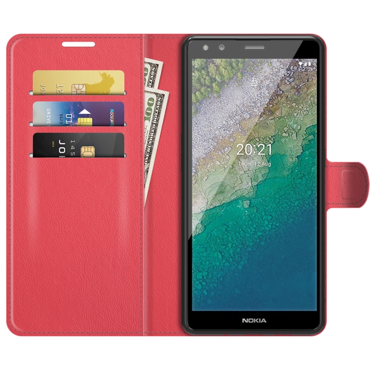 Para Nokia C01 Plus Litchi Texture Horizontal Flip Funda protectora con soporte y ranuras para tarjetas y billetera (rojo)
