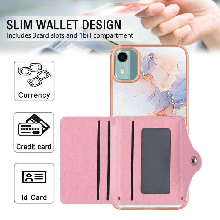 Estuche para Teléfono Nokia C12 con Ranura para Tarjeta Imd y Patrón Mármol (Galaxy Marble White)
