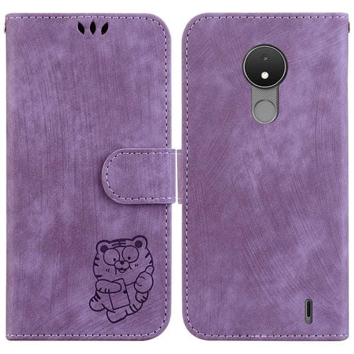 Funda para Teléfono Nokia C21 Cuero con Relieve Little Tiger (Púrpura)