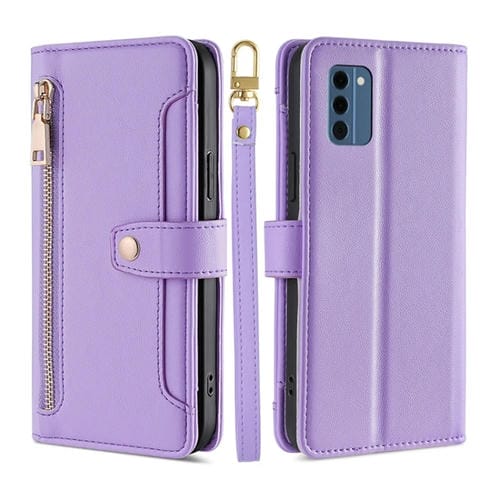 Funda de Cuero para Nokia C300 4G Us Edition Lite con Textura de Oveja y Cremallera Cruzada (Púrpura)