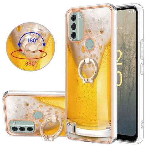 Funda para Nokia C31 Galvanoplastia IMD Doble Cara con Soporte para Anillo (Cerveza de Barril)