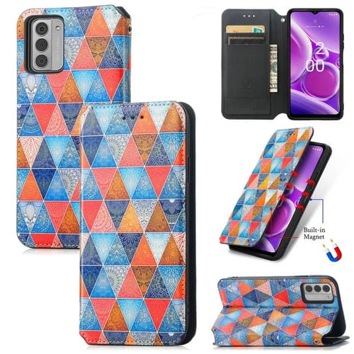 Funda de Cuero Magnética Caseneo para Nokia G42 (Rhombus Mandala) Colorida
