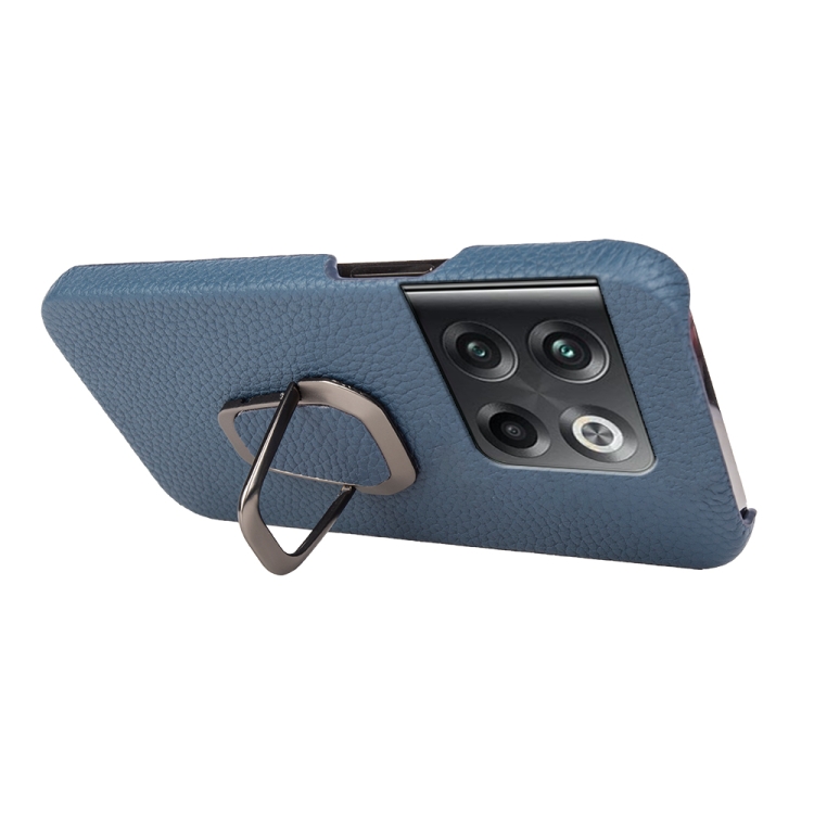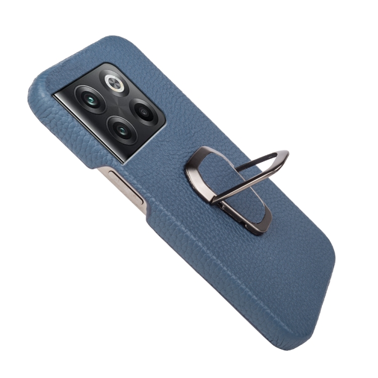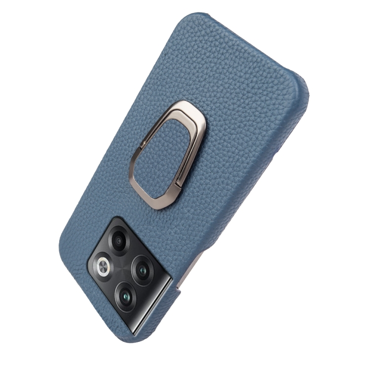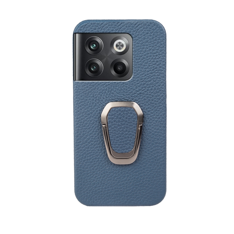 - 1x Funda de Cuero Genuino para OnePlus Ace Pro / 11T con Ring Holder y Textura Litchi (Azul)