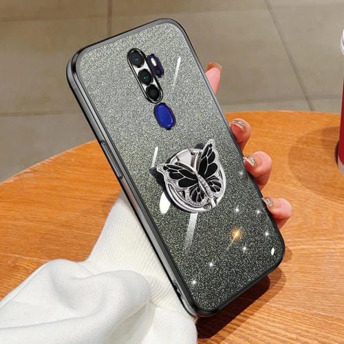 Para Oppo A11X / A9 2020 Funda para Teléfono de TPU con Soporte de Mariposa con Brillo Degradado Plateado (Negro)