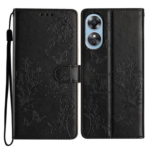 Para Oppo A17 Butterfly Love Flower Funda de Cuero para Teléfono En Relieve (Negro)