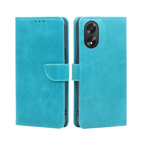 Para Oppo A38 4G / A18 4G Funda para Teléfono de Cuero con Tapa con Hebilla y Textura de Pantorrilla (Azul Claro)