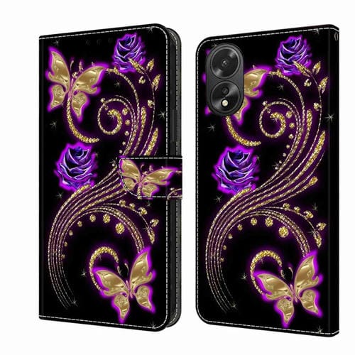 Para Oppo A38 4G Crystal 3D Funda Protectora de Cuero para Teléfono a Prueba de Golpes (Mariposa de Flor Púrpura)