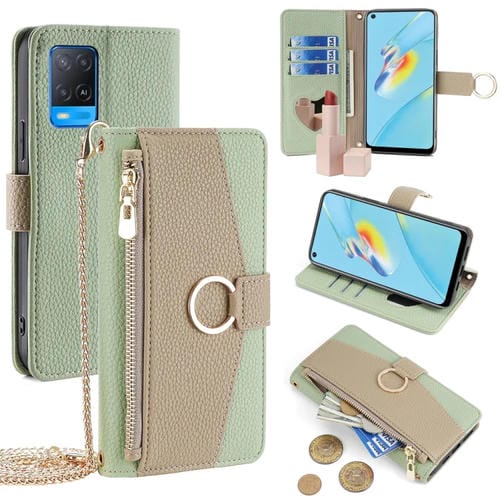 Para Oppo A54 4G Crossbody Litchi Texture Funda de Cuero para Teléfono (Verde)