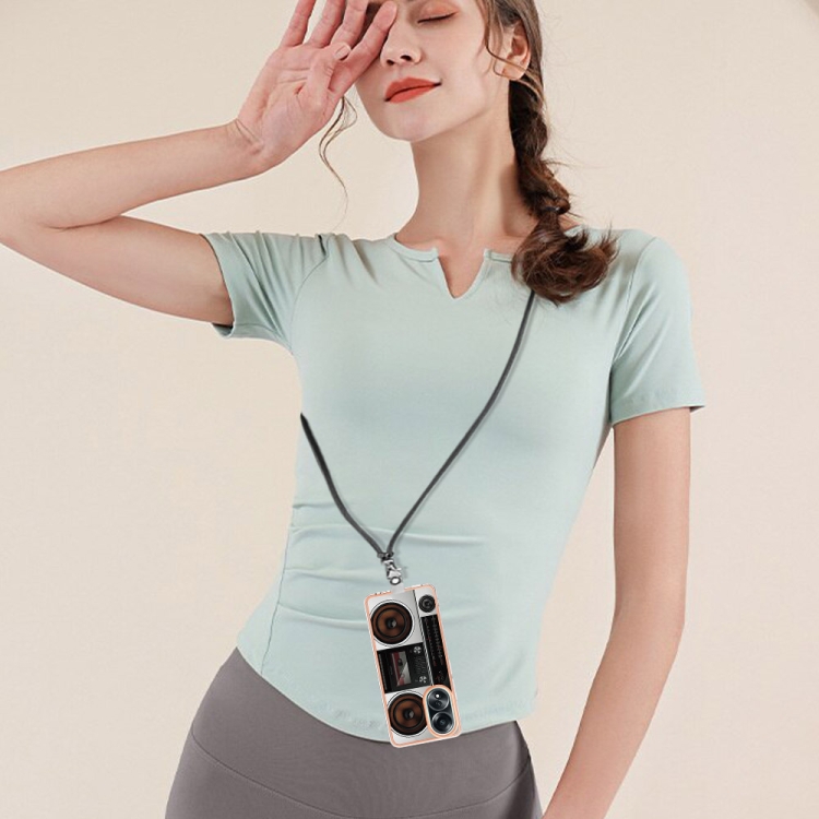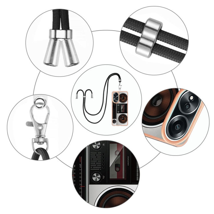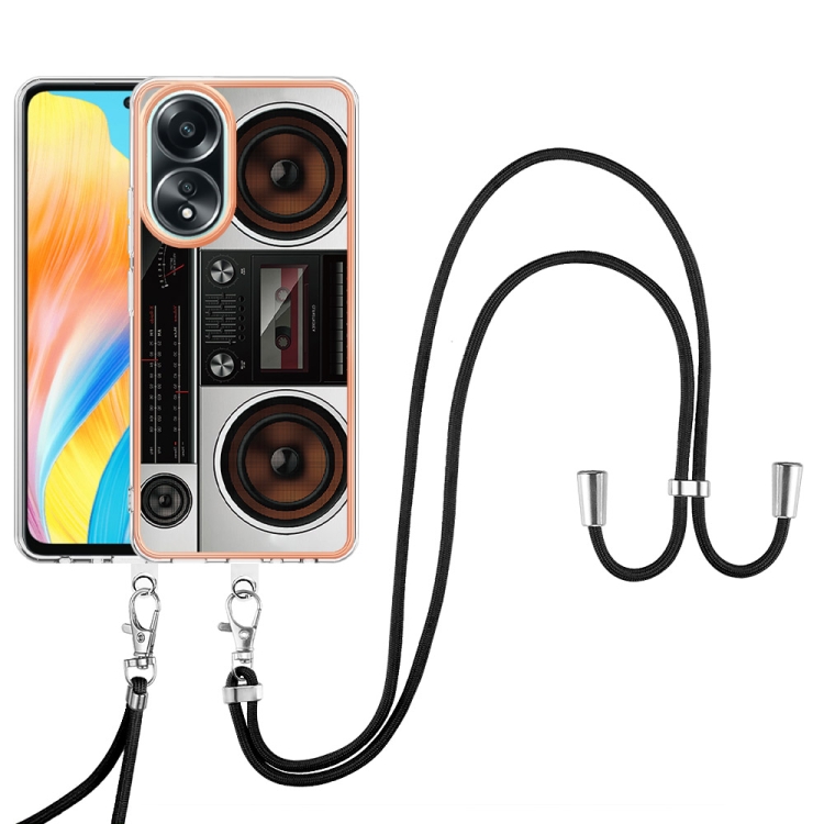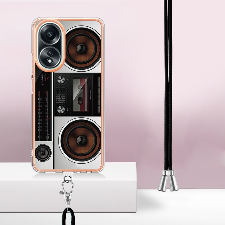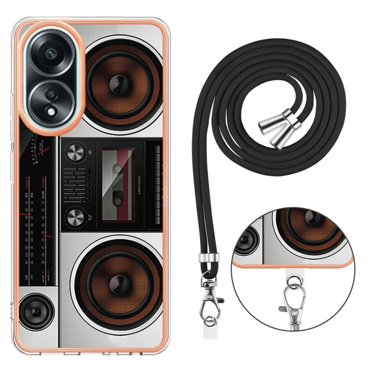 Para Oppo A58 4G Estuche para Teléfono Imd de Doble Cara con Galvanoplastia y Cordón (Radio Retro)
