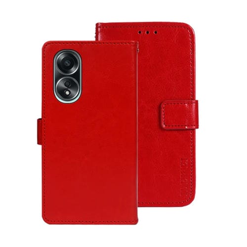 Para Oppo A58 4G Funda para Teléfono de Cuero con Textura Crazy Horse de Idewei Extranjero con Soporte (Rojo)