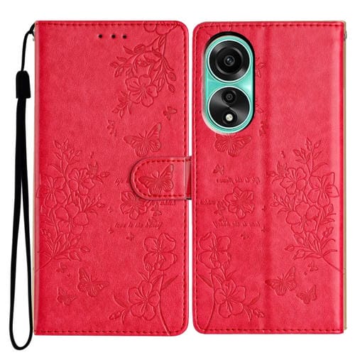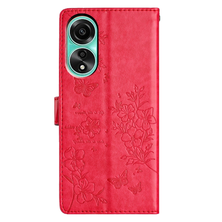 Para Oppo A58 4G Global Butterfly Love Flower Funda de Cuero para Teléfono En Relieve (Rojo)