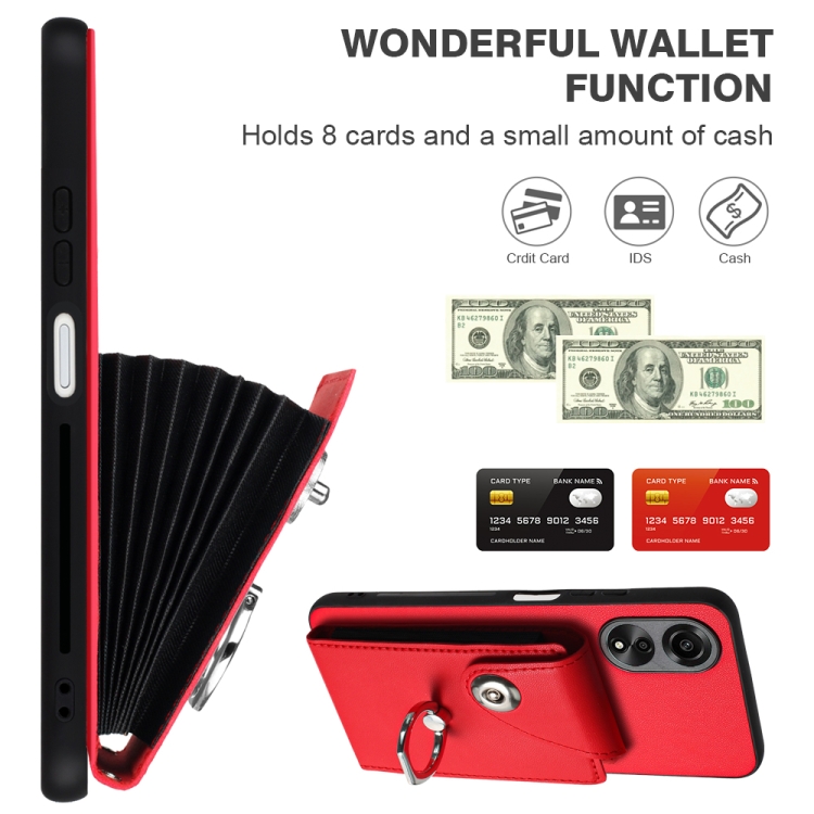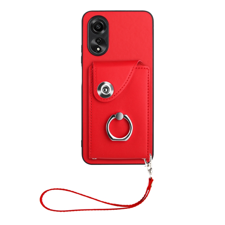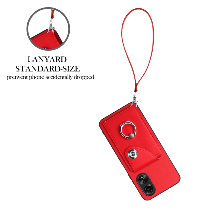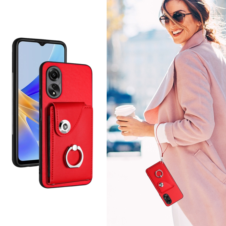 Para Oppo A58 4G Global Organ Card Bag Ring Holder Pu Funda para Teléfono con Cordón (Rojo)
