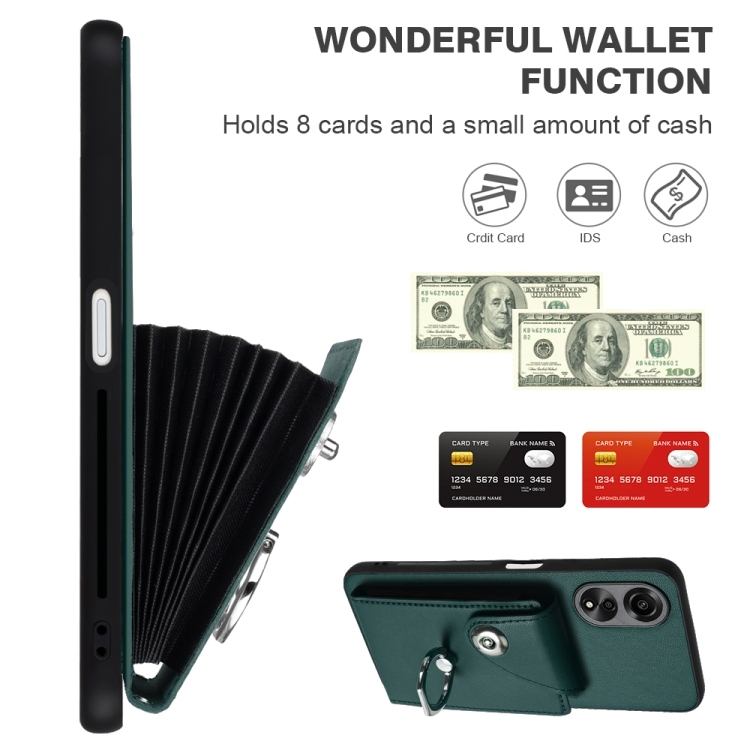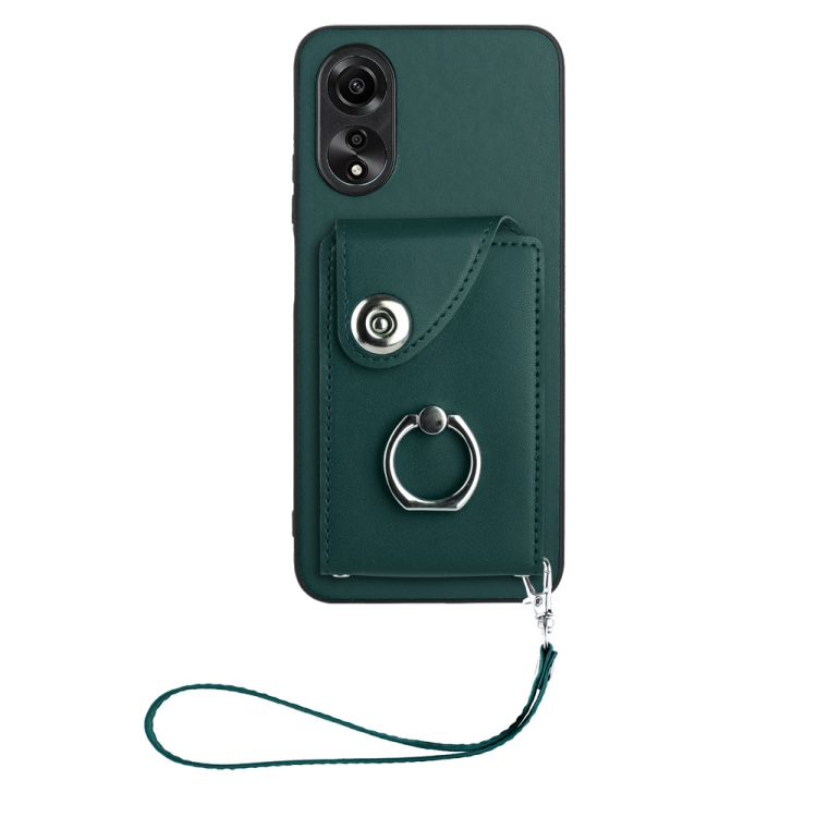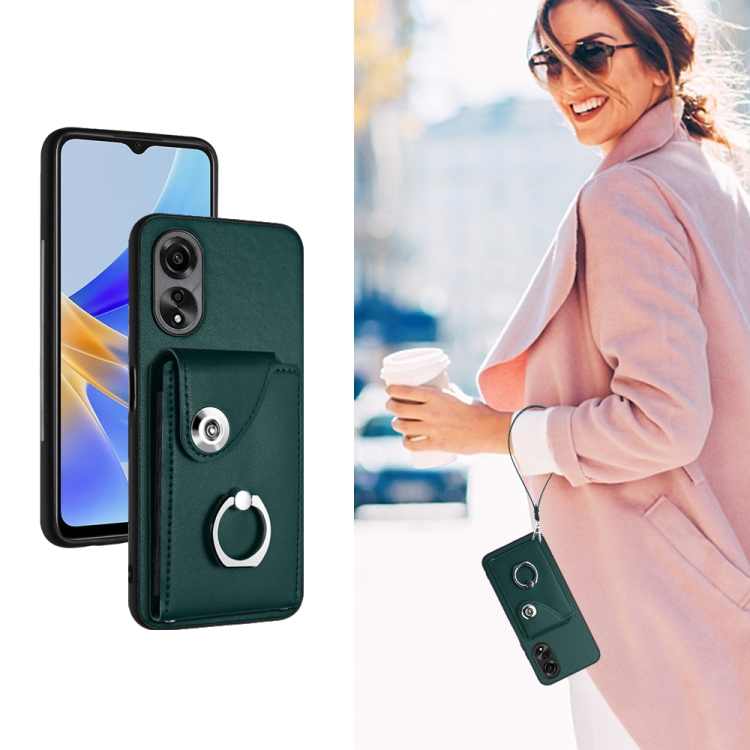Para Oppo A58 / A58X / A78 5G / A1X / A2X Bolsa para Tarjeta de Órgano Soporte para Anillo Funda para Teléfono Pu con Cordón (Verde)