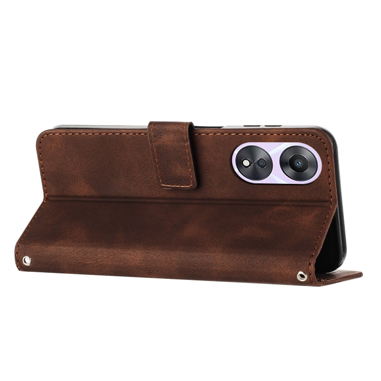 Para Oppo A58 / A78 Dream Triangle Funda de Cuero para Teléfono con Cordón Largo (Marrón)