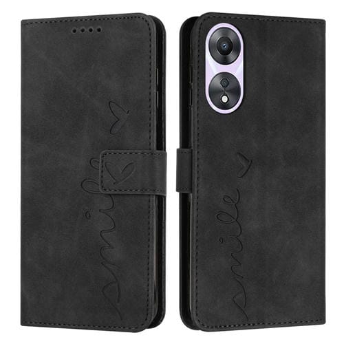Para Oppo A58 / A78 Skin Feel Heart Funda para Teléfono de Cuero En Relieve con Cordón Largo (Negro)
