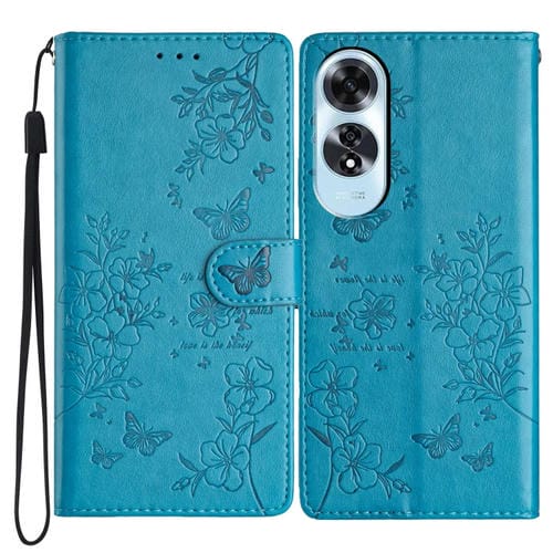 Para Oppo A60 Butterfly Love Flower Funda de Cuero para Teléfono En Relieve (Azul)
