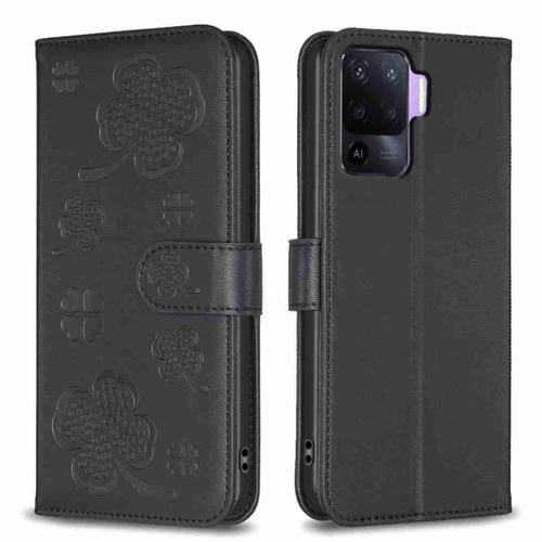 Para Oppo A76 5G / A36 4G Funda para Teléfono de Cuero con Relieve de Cuatro Hojas (Negro)