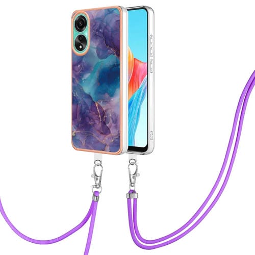Para Oppo A78 4G Caja de Teléfono Imd de Doble Cara de Mármol Galvanizado con Cordón (Púrpura 016)