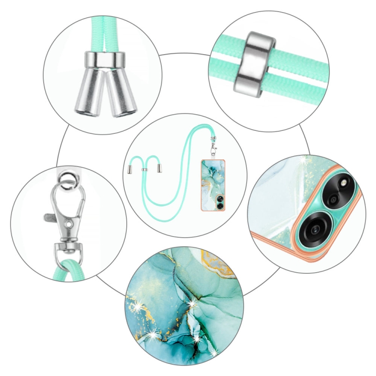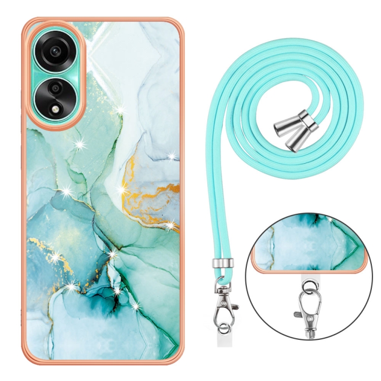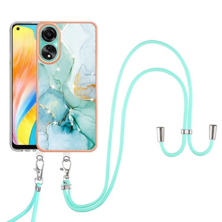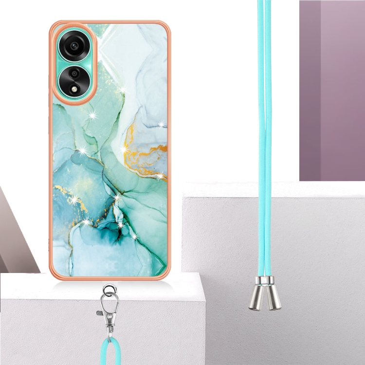 Para Oppo A78 4G Caja de Teléfono Imd de Doble Cara de Mármol Galvanizado con Cordón (Verde 003)
