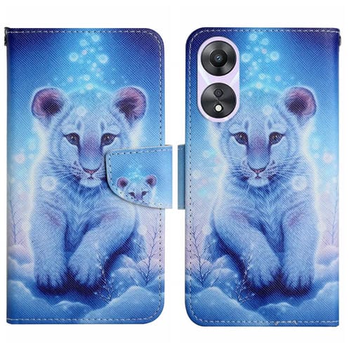 Para Oppo A78 4G Funda de Cuero para Teléfono con Patrón de Dibujo Coloreado (Pequeño Leopardo)