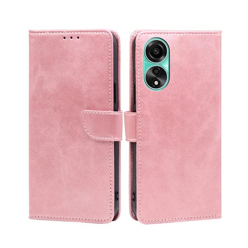 Para Oppo A78 4G Funda para Teléfono de Cuero con Tapa con Hebilla y Textura de Becerro (Oro Rosa)
