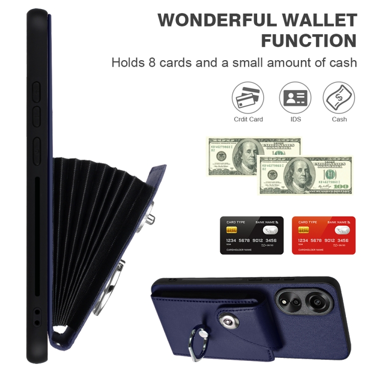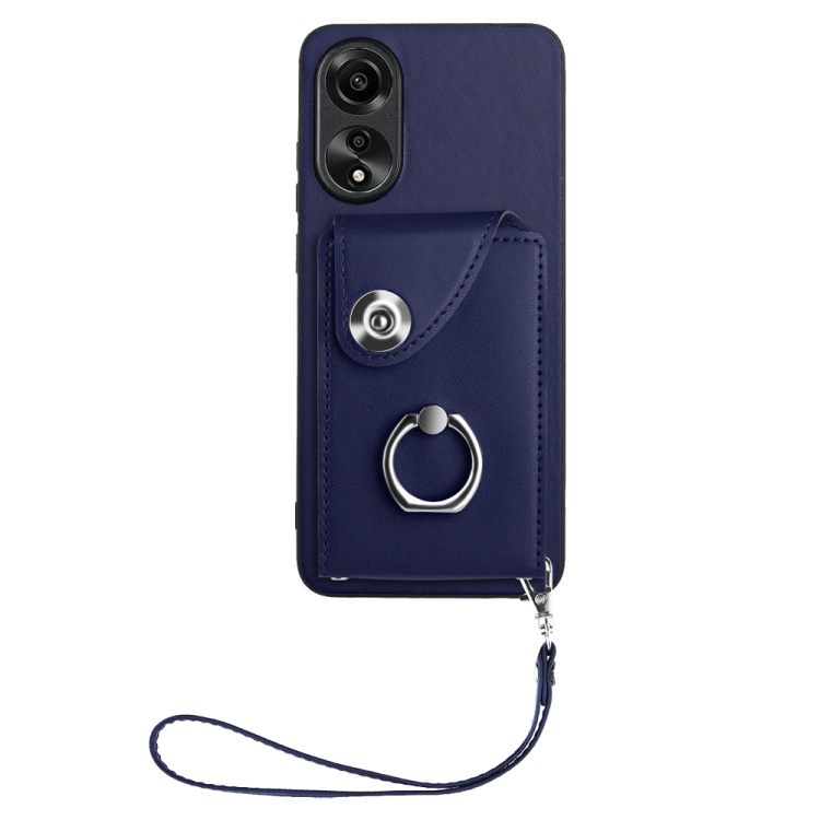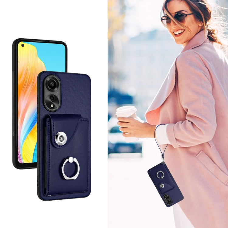 Para Oppo A78 4G Global Organ Card Bag Ring Holder Pu Funda para Teléfono con Cordón (Azul)