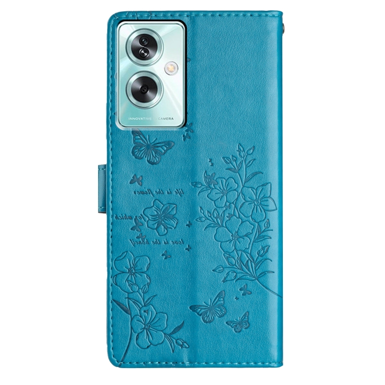 Para Oppo A79 / A2 5G Funda para Teléfono de Cuero con Relieve de Flor de Amor y Mariposa (Azul)
