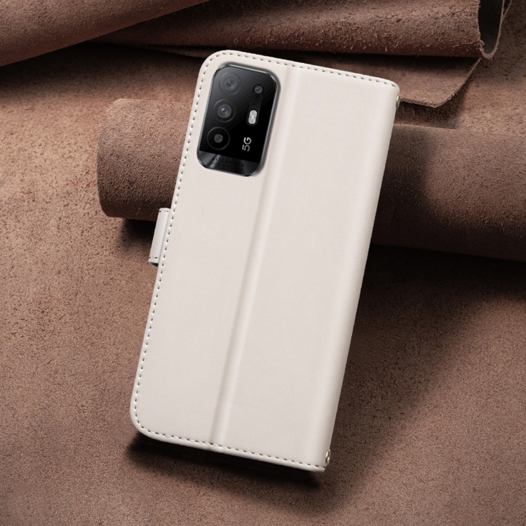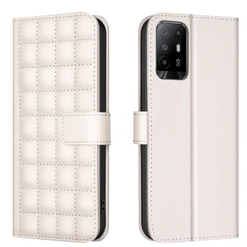 Para Oppo A94 5G / Reno5 Z / F19 Pro+ Funda de Cuero para Teléfono con Textura Cuadrada (Beige)