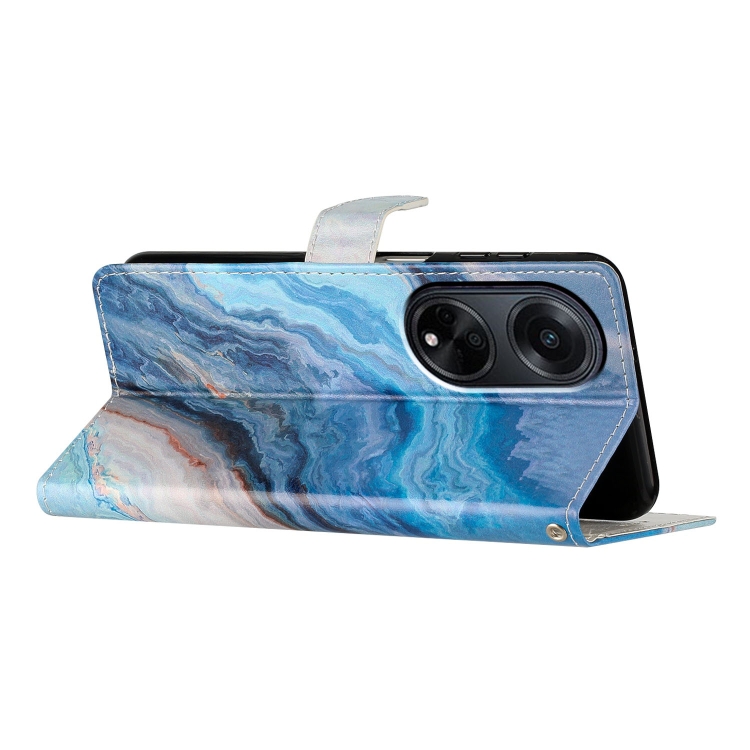 Para Oppo A98 Funda de Cuero con Dibujo Coloreado (Mármol Azul)