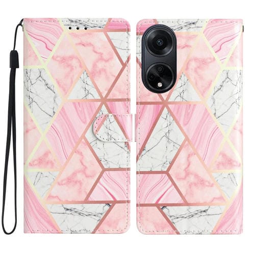 Para Oppo A98 Funda de Cuero con Dibujo Coloreado (Mármol Rosa)