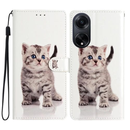 Para Oppo A98 Funda de Cuero para Teléfono con Dibujo de Colores (Little Tabby Cat)