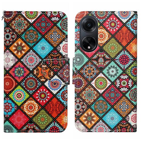 Para Oppo A98 Funda de Cuero para Teléfono con Patrón de Dibujo Coloreado (Estilo Étnico)
