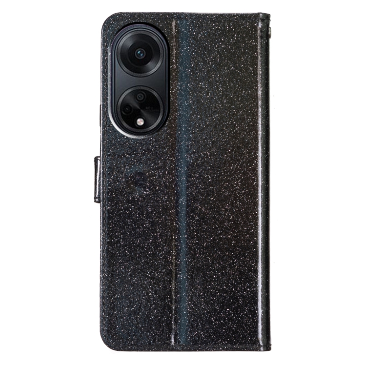 Para Oppo A98 Glitter Powder Flip Funda de Cuero para Teléfono (Negro)
